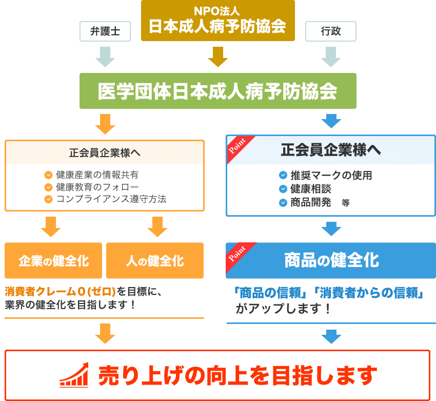 推奨選定制度は、商品の品質、安全性について審査をし、消費者が安心して商品を使用するための指標となり、「商品の健全化」・「人の健全化」・「企業の健全化」を通して商品の売り上げ向上を目指していく制度で、正会員のみが受けることができるサービスです。